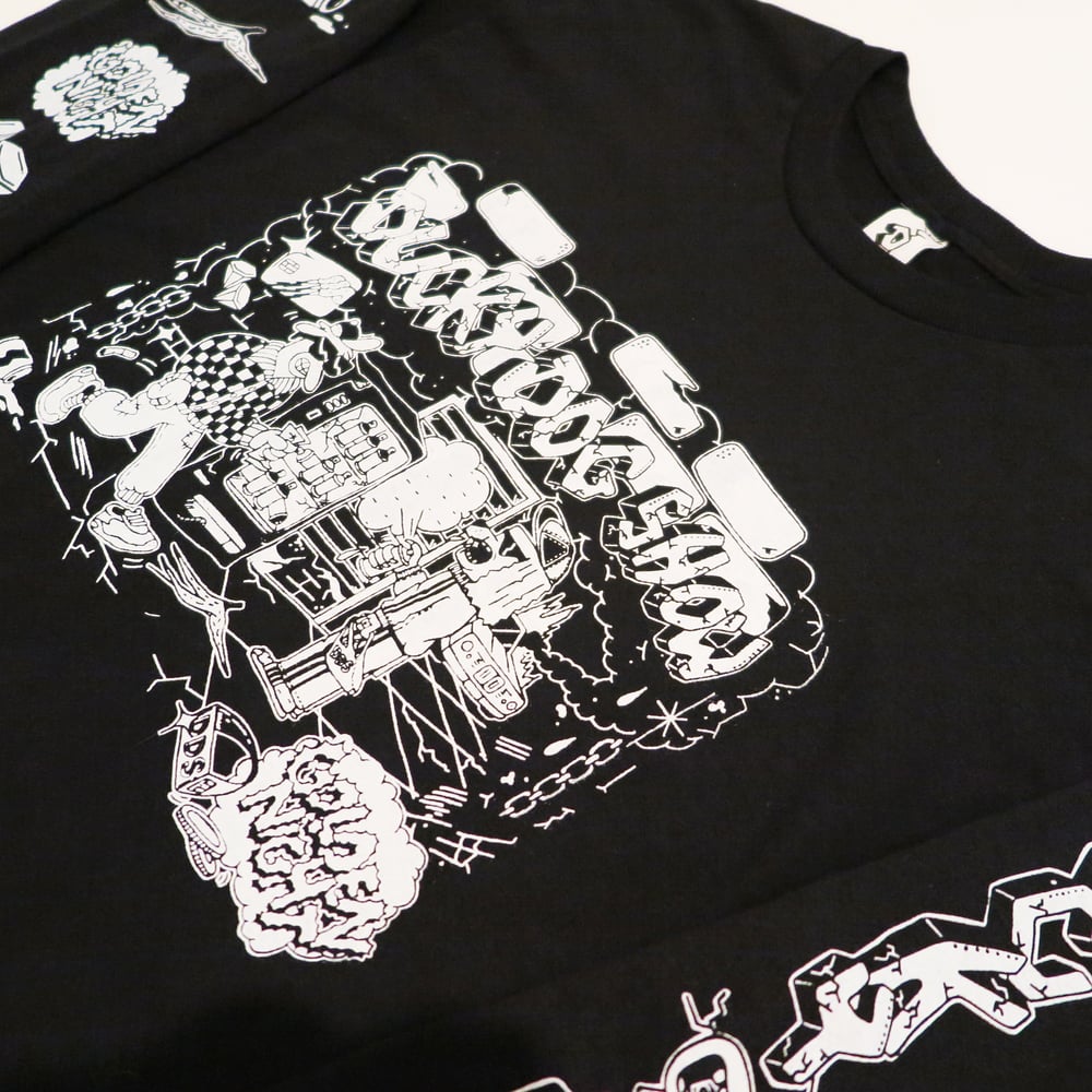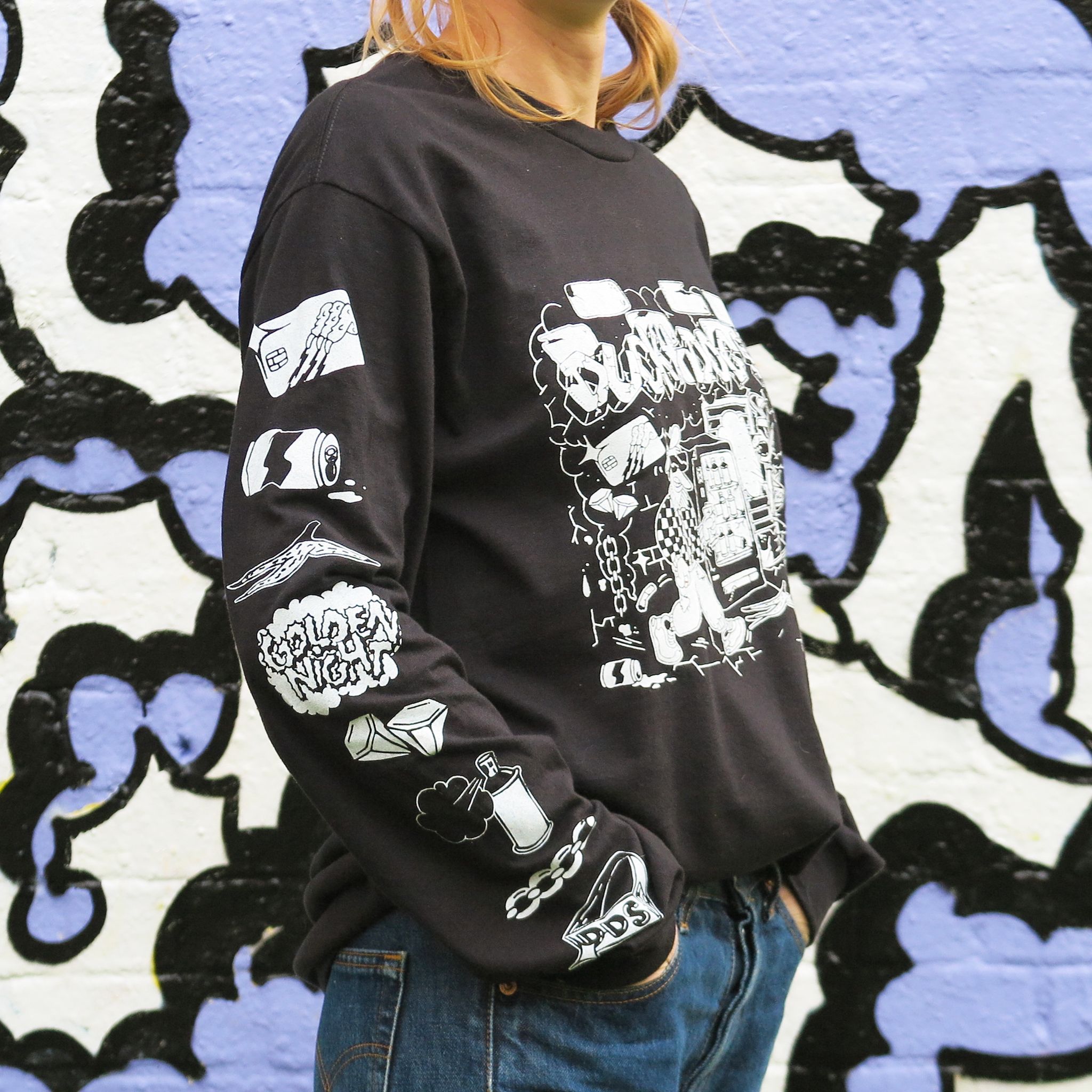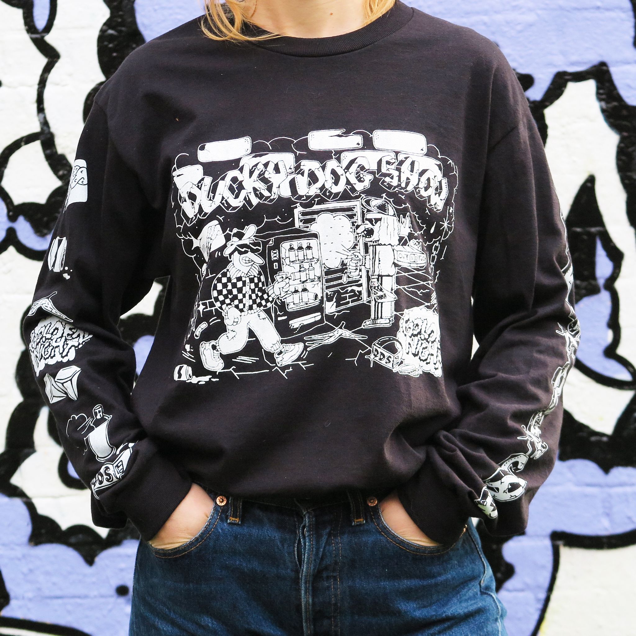 Limited long-sleeve drop by the Based between Namur and Brussels, illustrators & graffiti artists Lucile & TRAMA aka Ducky Dog Show