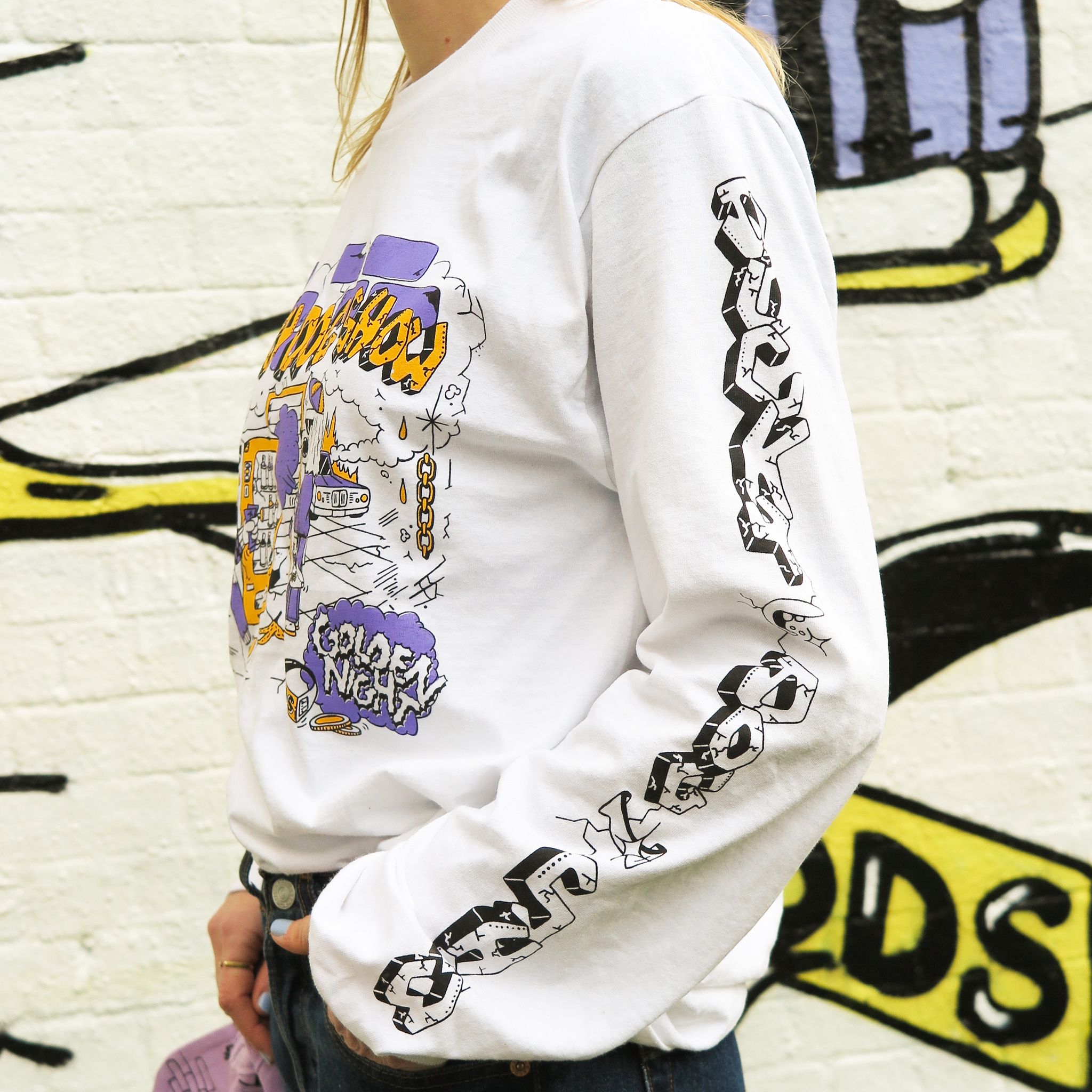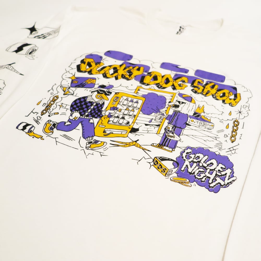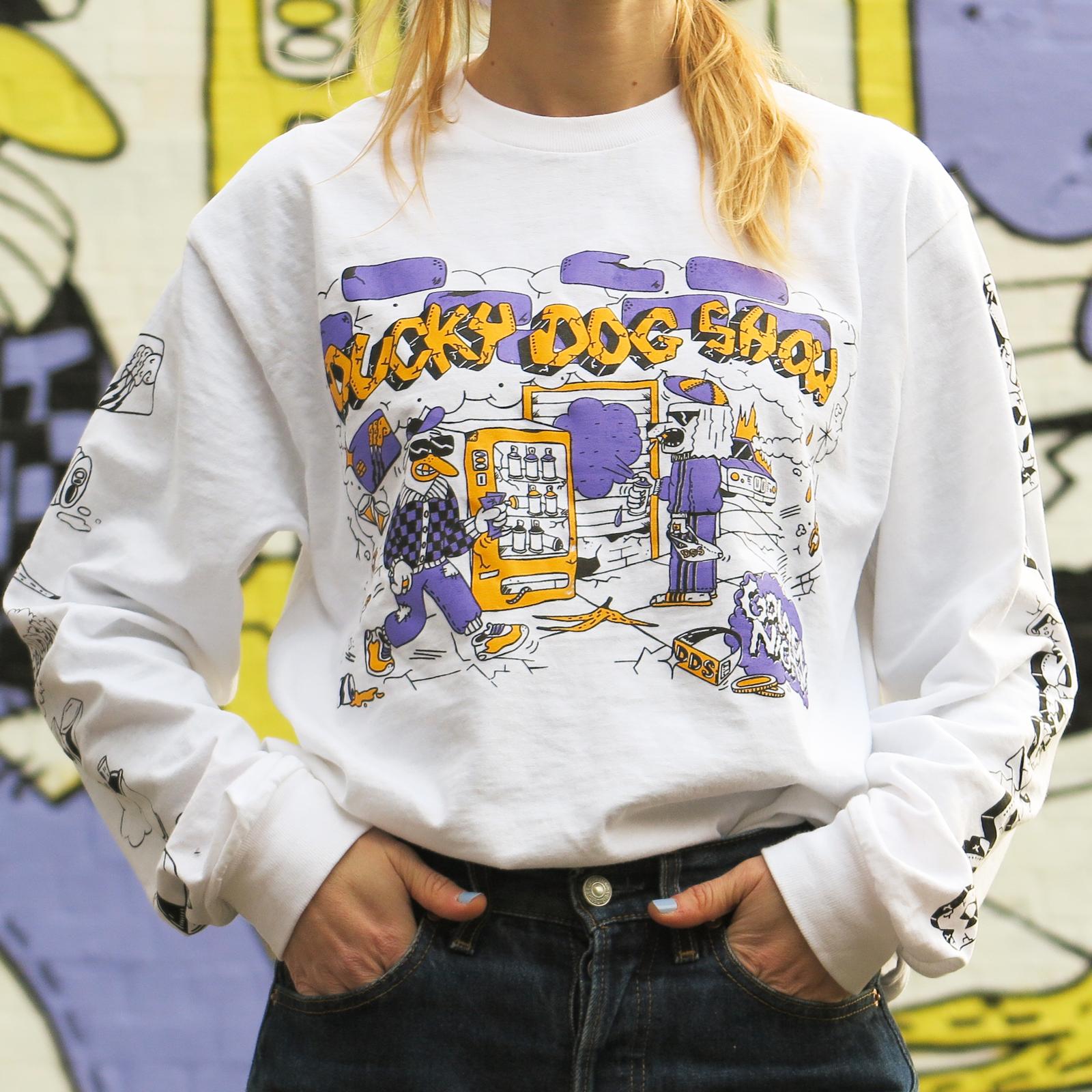 Limited long-sleeve drop by the Based between Namur and Brussels, illustrators & graffiti artists Lucile & TRAMA aka Ducky Dog Show
